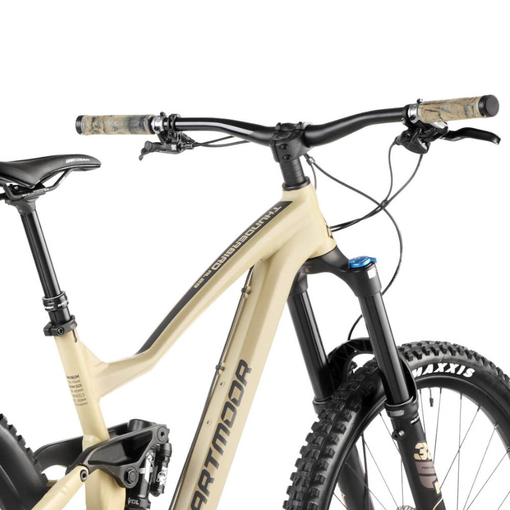 Dartmoor Thunderbird Superenduro Pro należy do rowerów full-suspension. Z przodu projektanci umieścili amortyzowany widelec Fox 38 Performance 29" o skoku 180 mm, a z tyłu – Fox Float X Performance (170 mm skoku).