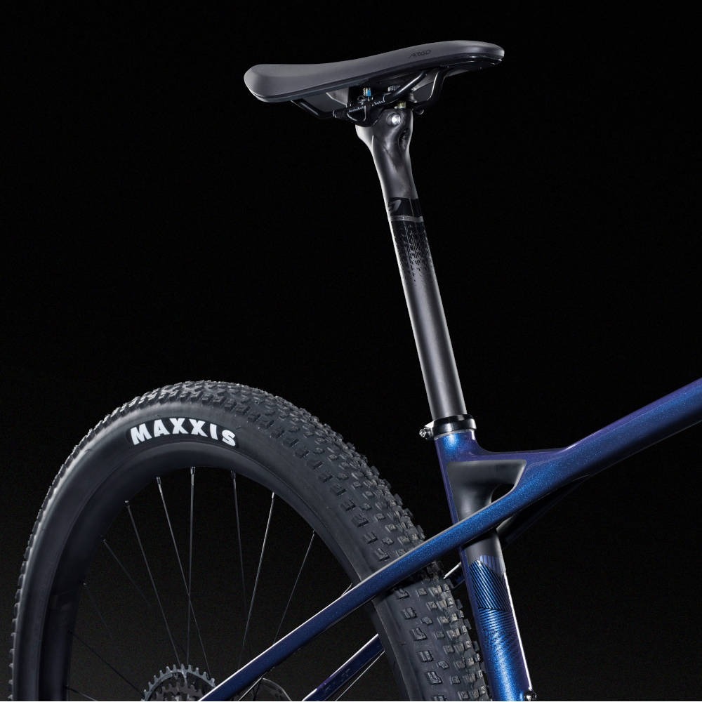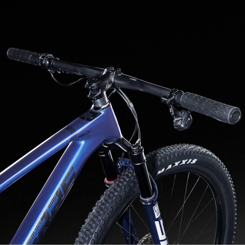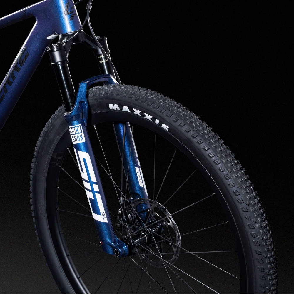Rower MTB Lapierre Prorace CF 9.9 przemieszcza się na dużych, 29-calowych kołach, co poprawia jego sterowność. Karbonowe obręcze to autorski projekt marki, a ogumienie to wytrzymałe, terenowe opony z gęstym, drobnym bieżnikiem – Maxxis Rekon Race 3C MaxxTerra EXO TR.