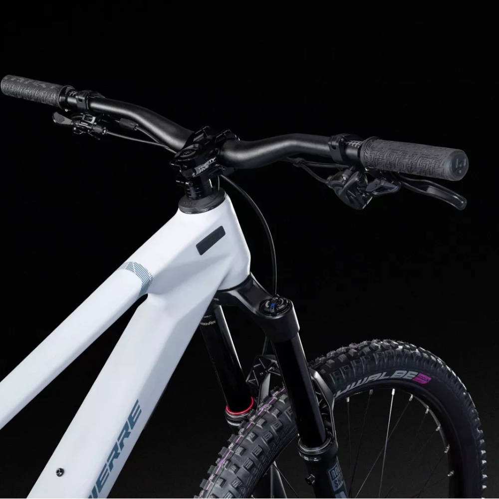 Rower MTB Lapierre Spicy CF 6.9 jak przystało na zaawansowany jednoślad, korzysta z ramy wykonanej z włókna węglowego – trwałej, a przy tym bardzo lekkiej i doskonale tłumiącej wstrząsy. Model należy do tzw. full suspension, czyli z pełnym zawieszeniem – tutaj dostarczonym przez amerykańskiego lidera, firmę Rock Shox. W przedniej jego części znajdziesz widelec amortyzowany ZEB Select Charger RC 15x110 DebonAir o skoku 180 mm, a z tyłu damper – Super Deluxe Coil Select R Trunnion. Taki zestaw poradzi sobie z nawet największymi wybojami, jak skały, gałęzie czy korzenie oraz doskonale tłumi uderzenia o podłoże po skokach rowerowych.