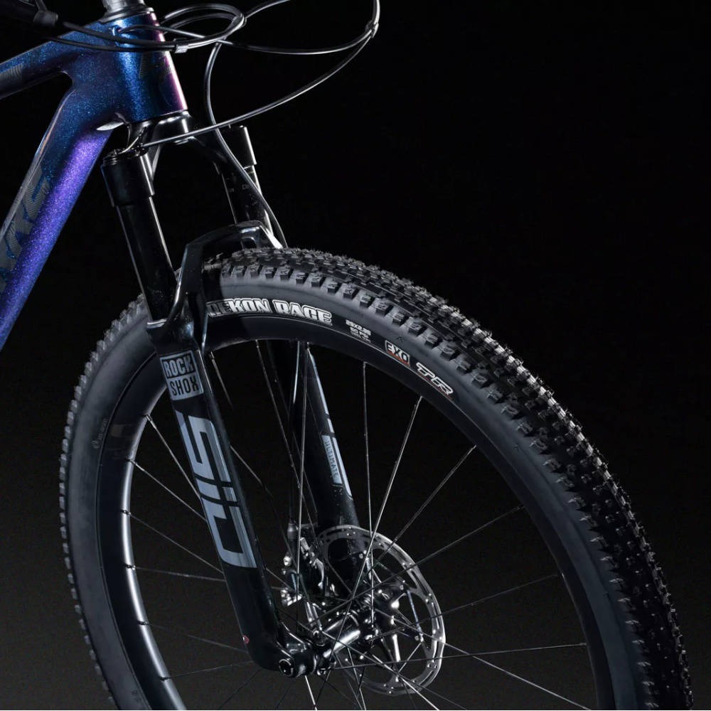 Rower MTB Lapierre XR 9.9 należy do wariantów z pełnym zawieszeniem, czyli tzw. full suspension. Francuskie przedsiębiorstwo wyposażyło go w amortyzatory od branżowego lidera w tej dziedzinie – amerykańskiej firmy Rock Shox. Z przodu znajdziesz widelec SID SL Ultimate 3P Race Day, a z tyłu damper SID Luxe Ultimate 3P Race Day. Kombinacja zapewnia skok zawieszenia wynoszący aż 100 mm, więc doskonale poradzi sobie z typowymi trasami XC. W tłumieniu wibracji przy jeździe po wybojach znacznie pomoże także sama konstrukcja ramy, gdyż zrobiona jest ona z włókna węglowego – jego dodatkowym atutem jest również niska waga. Geometria roweru MTB XC Lapierre XR 9.9 należy uznać za sportową, zachęca do przyjęcia pochylonej pozycji i umożliwia wydajną jazdę w formacie Olympic MTB.