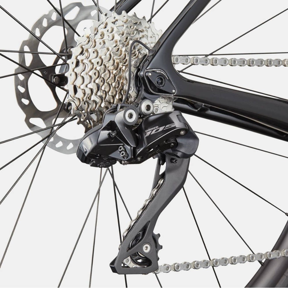 Rower szosowy Cannondale SuperSix EVO 3 korzysta z zaawansowanej, elektronicznej grupy osprzętowej od japońskiego producenta – Shimano 105. Napęd w konfiguracji 2x12 da Ci odpowiednią liczbę przełożeń w każdej sytuacji, a responsywne, hydrauliczne hamulce tarczowe sprawnie zatrzymają jednoślad nawet podczas jazdy w największą ulewę.