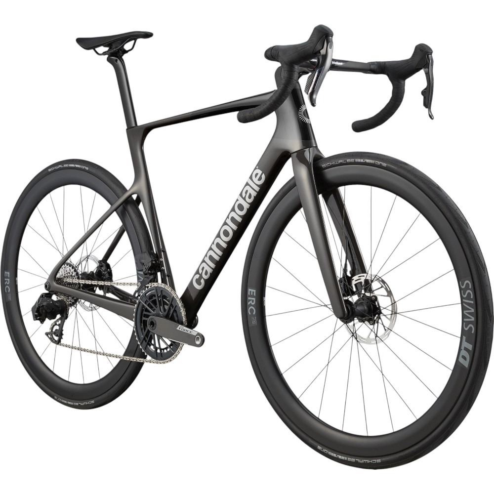 Warto zwrócić uwagę na zastosowany zestaw kół (przystosowany do użytku bezdętkowego). Cannondale SuperSix EVO 3 ma na wyposażeniu lekkie obręcze z włókna węglowego DT Swiss ERC 45 oraz opony Schwalbe One TLR – łączące przyczepność z wysoką trwałością i odpornością na przebicia.