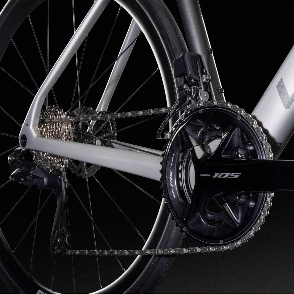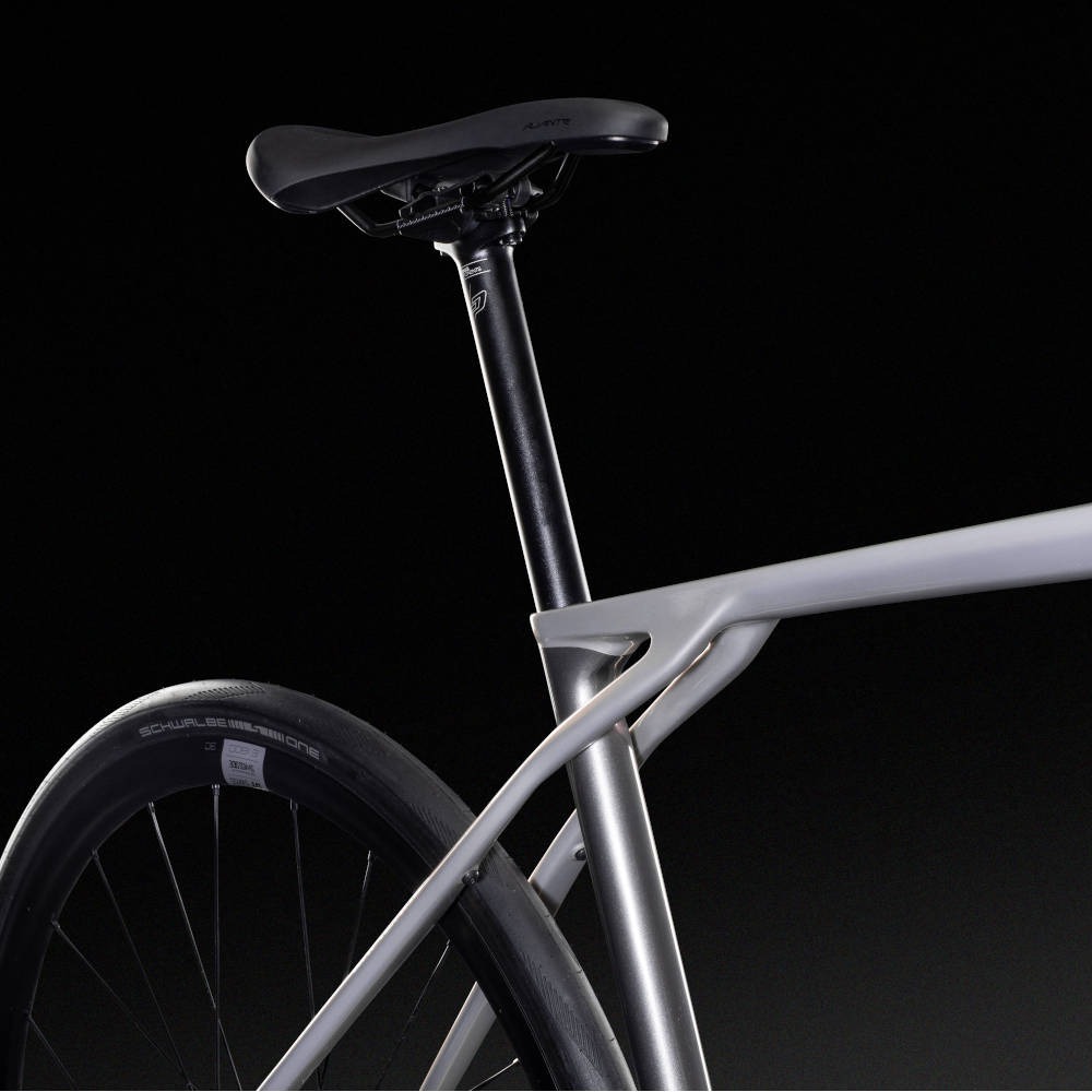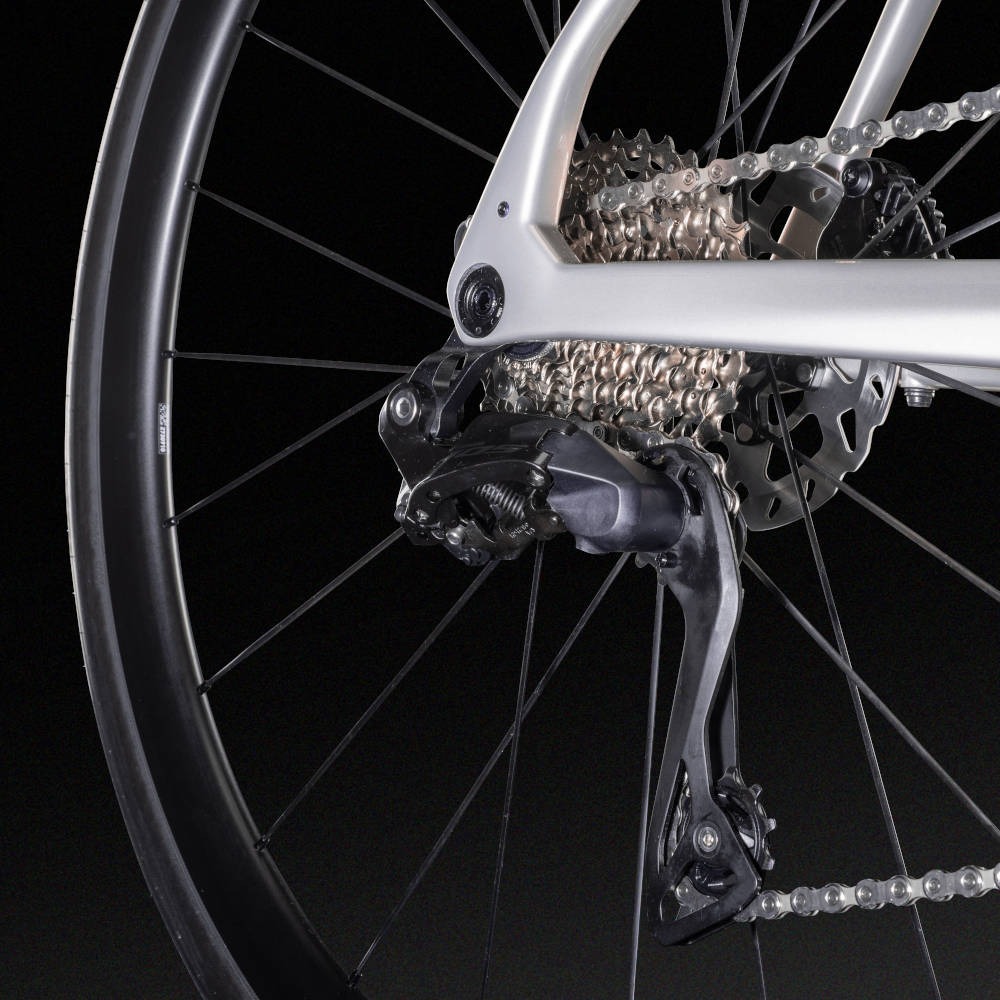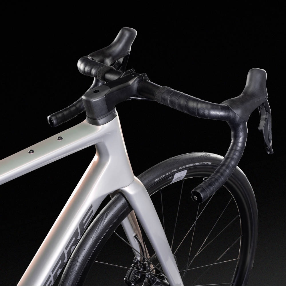 Jak przystało na szosówkę z najwyższej półki – wariant dysponuje w 100% karbonową ramą, a do tego wzbogacony został o precyzyjnie dopasowany do niej widelec z tego samego materiału. Takie połączenie czyni rower bardzo lekkim, a także znacznie lepiej tłumiącym wibracje w czasie jazdy w porównaniu do modeli aluminiowych.