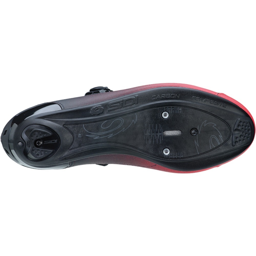 Podeszwa wykonana jest z włókna węglowego połączonego z nylonem, takie rozwiązanie zapewnia większą sztywność i trwałość niż standardowa nylonowa podeszwa. Wyposażona w szosowe mocowanie bloku na 3 śruby oraz podziałkę, która znacznie ułatwi proces montażu lub wymiany bloków.