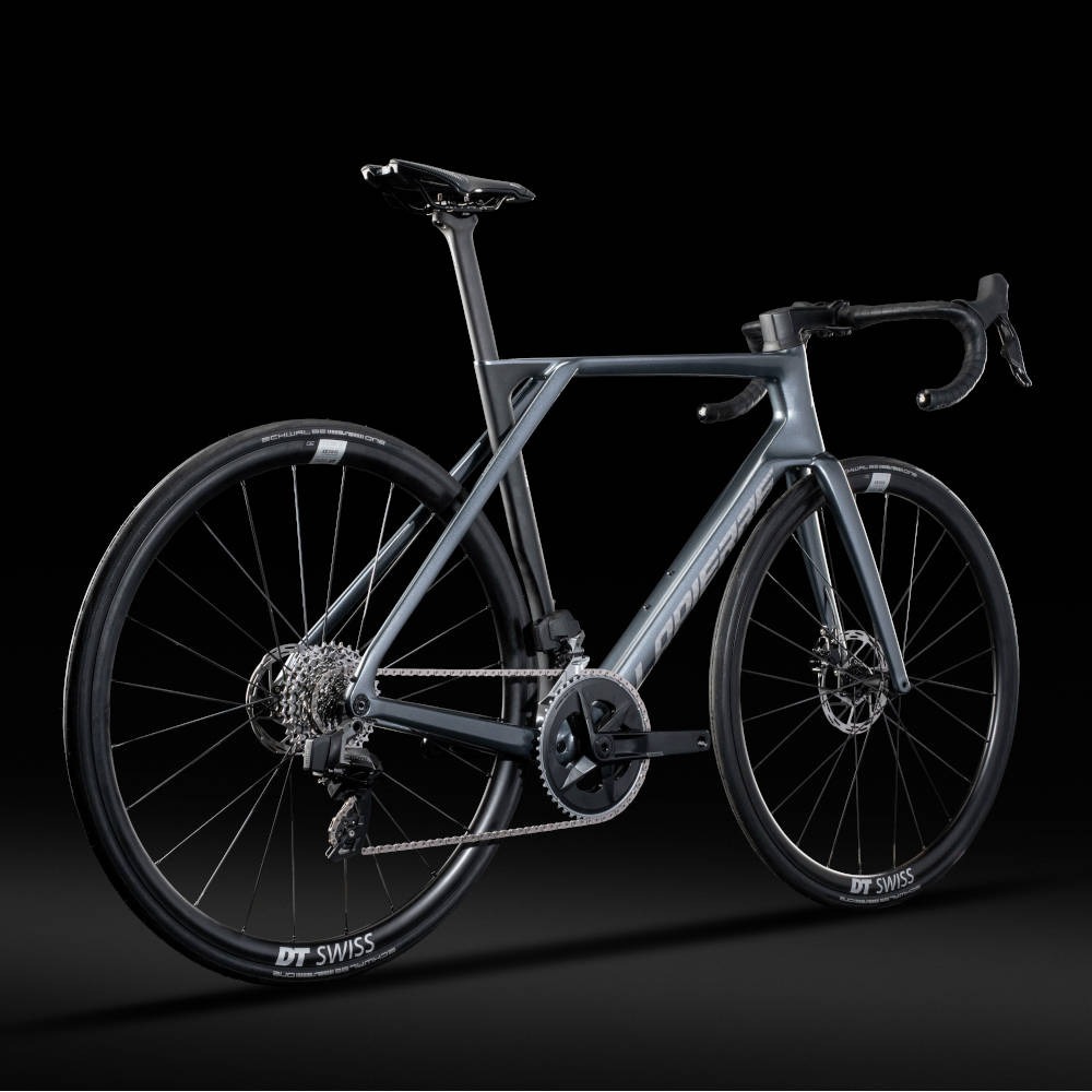 Rower szosowy Lapierre Xelius 6.0 AXS spoczywa na 28-calowych kołach. Obręcze to aluminiowe DT Swiss E1800 Splin, a do tego wyposażony został w opony Schwalbe One Performance.