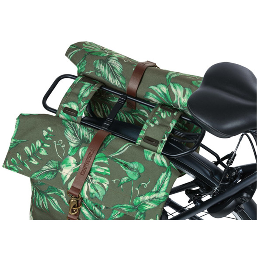 Torba Basil Ever-Green to solidny i wyjątkowy dodatek! Modny, botaniczny nadruk został ręcznie pomalowany przez holenderską artystkę Meggy Lemmens. Torba wykonana jest w 40% z przetworzonego tworzywa PET i świetnie wpisuje się w nurt ekologii. Wodoodporny materiał przypomina bawełnę, ale zawiera nie mniej niż 21 plastikowych butelek o pojemności 350 ml z recyklingu.Ponadto, ma detale ze skóry wegańskiej w kolorze antycznego brązu. Odblaski zadbają o twoje bezpieczeństwo.