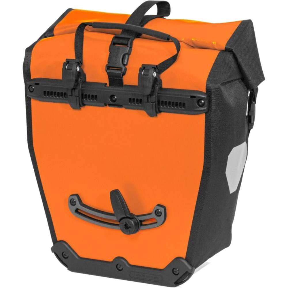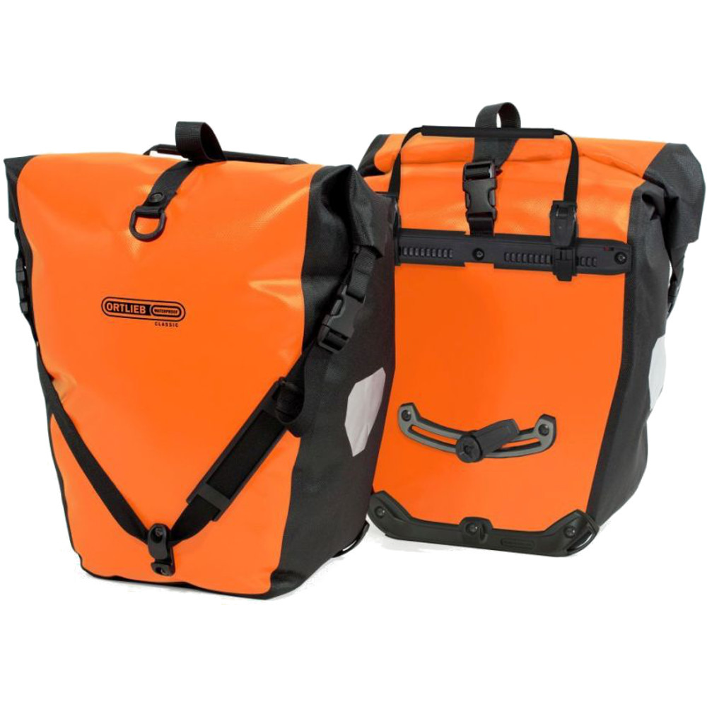 Ortlieb Back Roller Classic to zestaw dwóch tylnych sakw rowerowych, które świetnie sprawdzają się podczas dłuższych podróży. Boki każdej z sakw zostały wykonane z Cordury PS490, z kolei do wykonania tylnej oraz przedniej części wykorzystano PD620. Sakwy posiadają wodoodporne, zwijane zamknięcie, dzięki któremu ich zawartość ma zapewnioną odpowiednią ochronę przed wodą, pyłem, czy śniegiem. Po bokach sakw umieszczono odblaski 3M Scotchlite, które znacznie poprawiają Twoją widoczność na drodze podczas jazdy po zmroku. Sakwy Back Roller Classic mogą być używane zarówno w zestawie, jak i pojedynczo. Wszystko zależy od Twoich potrzeb. Jeżeli potrzebujesz więcej miejsca na załadunek to pamiętaj, że do sakw możesz przypiąć na górze torbę Ortlieb Rack Pack. Możliwe jest także jednoczesne używanie sakw oraz torby na bagażnik Ortlieb Trunk Bag lub Travel Biker. Po dotarciu do celu możesz w prosty sposób odpiąć sakwę i wyposażyć ją w dołączony pasek na ramię. Dzięki niemu o wiele łatwiej i wygodniej będzie Ci się przemieszczało z sakwą.