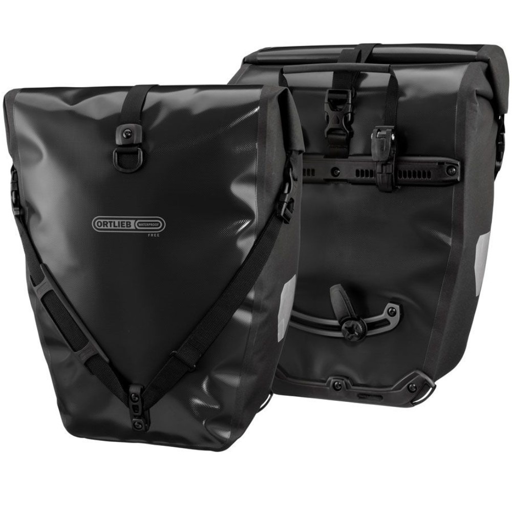 Ortlieb Back Roller Free to zestaw dwóch tylnych sakw rowerowych, które świetnie sprawdzają się podczas dłuższych podróży. Materiał, z którego zostały wykonane sakwy, nie zawiera PVC i wykazuje się bardzo wysoką elastycznością w niskich temperaturach, czym przewyższa torbę Back Roller w wersji Classic. Do wykonania sakw wykorzystano poliestrową tkaninę powlekaną poliuretanem, dzięki czemu zapewnia im właściwości wodoodporne. Nie musisz zatem obawiać się, że Twój bagaż zmoknie podczas jazdy w deszczu, czy podczas opadów śniegu. Sakwy posiadają także wodoodporne, zwijane zamknięcie, które chroni ich zawartość przed wodą, pyłem, czy śniegiem. Po bokach sakw umieszczono odblaski 3M Scotchlite, które znacznie poprawiają Twoją widoczność na drodze podczas jazdy po zmroku. Sakwy Back Roller Free mogą być używane zarówno w zestawie, jak i pojedynczo. Wszystko zależy od Twoich potrzeb. Jeżeli potrzebujesz więcej miejsca na załadunek to pamiętaj, że do sakw możesz dołączyć torbę Ortlieb Rack Pack za pomocą odpowiednich klamerek. Możliwe jest także jednoczesne używanie sakw oraz torby na bagażnik Ortlieb Trunk Bag lub Travel Biker. Po dotarciu do celu możesz w prosty sposób odpiąć sakwę i wyposażyć ją w dołączony pasek na ramię. Dzięki niemu o wiele łatwiej i wygodniej będzie Ci się przemieszczało z sakwą.