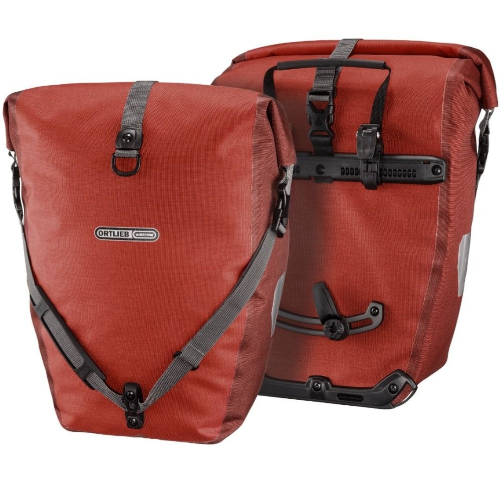 Ortlieb Back Roller Plus to zestaw dwóch tylnych sakw rowerowych, które zostały wykonane z lekkiej, laminowanej Cordury. Materiał wykorzystany do wykonania sakw wykazuje się właściwościami wodoodpornymi, dzięki czemu ich zawartość jest odpowiednio chroniona przed wodą, pyłem, czy śniegiem. Na bocznych ścianach sakw umieszczono sporej wielkości odblaski 3M Scotchlite, które znacznie poprawiają Twoją widoczność na drodze podczas jazdy po zmroku. Sakwy Back Roller Plus mogą być używane zarówno w zestawie, jak i pojedynczo. Wszystko zależy od Twoich potrzeb. Jeżeli potrzebujesz więcej miejsca na załadunek to pamiętaj, że do sakw możesz przypiąć na górze torbę Ortlieb Rack Pack. Możliwe jest także jednoczesne używanie sakw oraz torby na bagażnik Ortlieb Trunk Bag lub Travel Biker. Kiedy dotrzesz już do celu swojej podróży, możesz w prosty sposób odpiąć sakwę od roweru i wyposażyć ją w dołączony pasek na ramię. Dzięki niemu o wiele łatwiej i wygodniej będzie Ci się przemieszczało z sakwą.