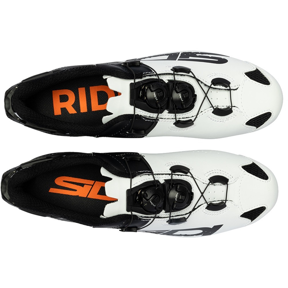 Cholewka butów Sidi Shot 2S wykonana została z najwyższej jakości materiałów wegańskich, zapewniając wytrzymałość, elastyczność i optymalną wentylację. Dzięki zastosowaniu zaawansowanej technologii oraz precyzyjnemu kształtowi, buty te doskonale przylegają do stopy, zapewniając doskonałą stabilność i efektywność pedałowania. Jedną z ciekawych cech butów szosowych Sidi Shot 2S jest podwójny system zapięcia na żyłkę, który umożliwia szybką i precyzyjną regulację dopasowania buta do stopy. Ten zaawansowany mechanizm pozwala kolarzom dostosować napięcie buta w dwóch różnych strefach, co zapewnia optymalne wsparcie i komfort podczas jazdy.