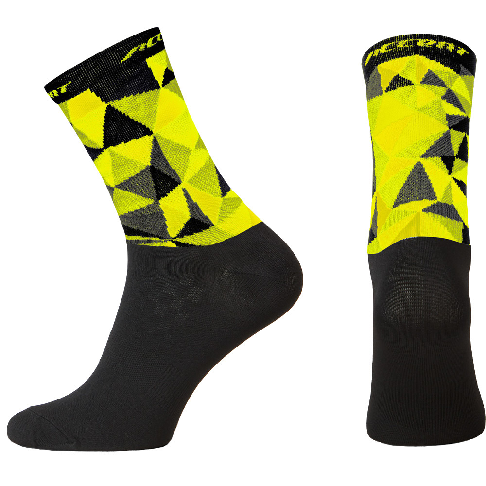 Skarpetki Mosaic Long kolarskie wykonane z tkaniny Prolen, która bardzo dobrze odprowadza wilgoć i chroni stopy przed nadmierną potliwością oraz bakteriami. Specjalny splot włókien w okolicach grzbietu stopy zapewnia bardzo dobrą wentylację, a jednocześnie delikatnie amortyzuje podeszwę. Idealnie przylegają do stopy nie powodując otarć. Ściągacz pewnie utrzymuje skarpetkę na miejscu. Specjalny splot w okolicy ścięgna Achillesa zapobiega nadmiernemu uciskowi. Skarpetki Mosaic Long bardzo szybko schną  i nie rozciągają się, zachowując swój fason przez długi czas.