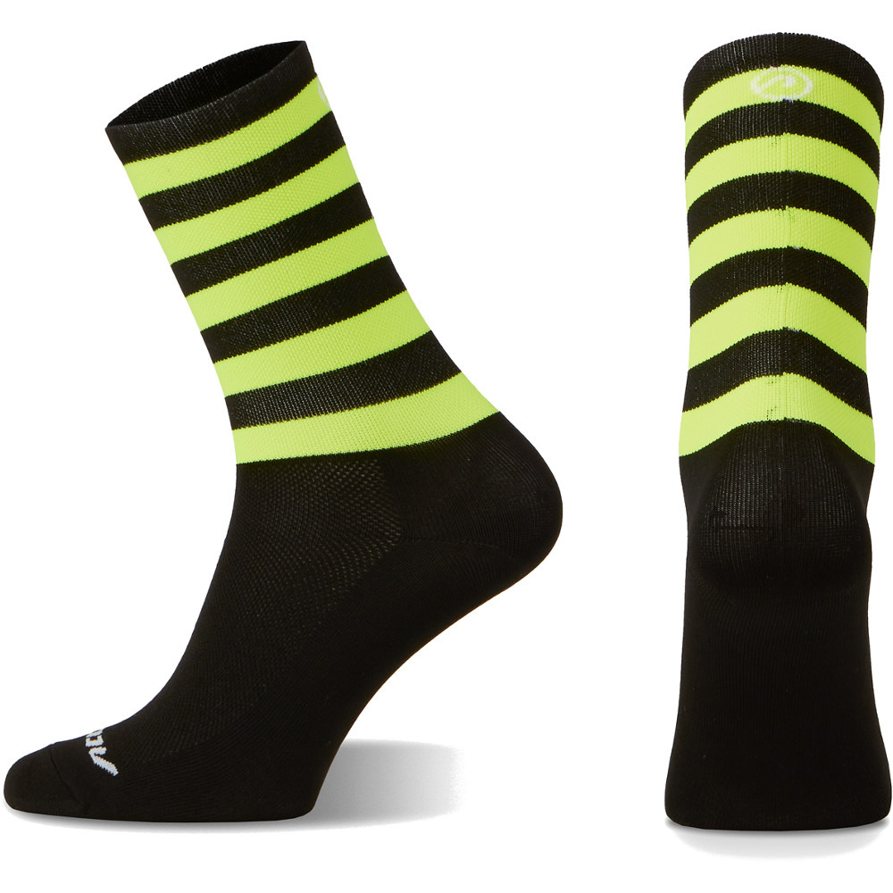 Skarpetki Stripe Long kolarskie wykonane z tkaniny Prolen, która bardzo dobrze odprowadza wilgoć i chroni stopy przed nadmierną potliwością oraz bakteriami. Specjalny splot włókien w okolicach grzbietu stopy zapewnia bardzo dobrą wentylację, a jednocześnie delikatnie amortyzuje podeszwę. Idealnie przylegają do stopy nie powodując otarć. Ściągacz pewnie utrzymuje skarpetkę na miejscu. Specjalny splot w okolicy ścięgna Achillesa zapobiega nadmiernemu uciskowi. Skarpetki Stripe Long bardzo szybko schną i nie rozciągają się, zachowując swój fason przez długi czas.