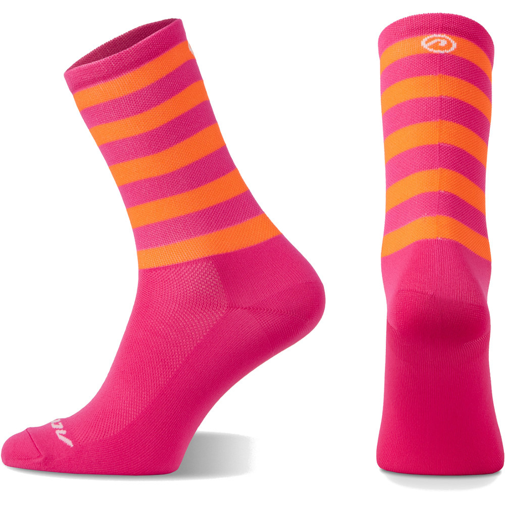 Skarpetki Stripe Long kolarskie wykonane z tkaniny Prolen, która bardzo dobrze odprowadza wilgoć i chroni stopy przed nadmierną potliwością oraz bakteriami. Specjalny splot włókien w okolicach grzbietu stopy zapewnia bardzo dobrą wentylację, a jednocześnie delikatnie amortyzuje podeszwę. Idealnie przylegają do stopy nie powodując otarć. Ściągacz pewnie utrzymuje skarpetkę na miejscu. Specjalny splot w okolicy ścięgna Achillesa zapobiega nadmiernemu uciskowi. Skarpetki Stripe Long bardzo szybko schną i nie rozciągają się, zachowując swój fason przez długi czas.