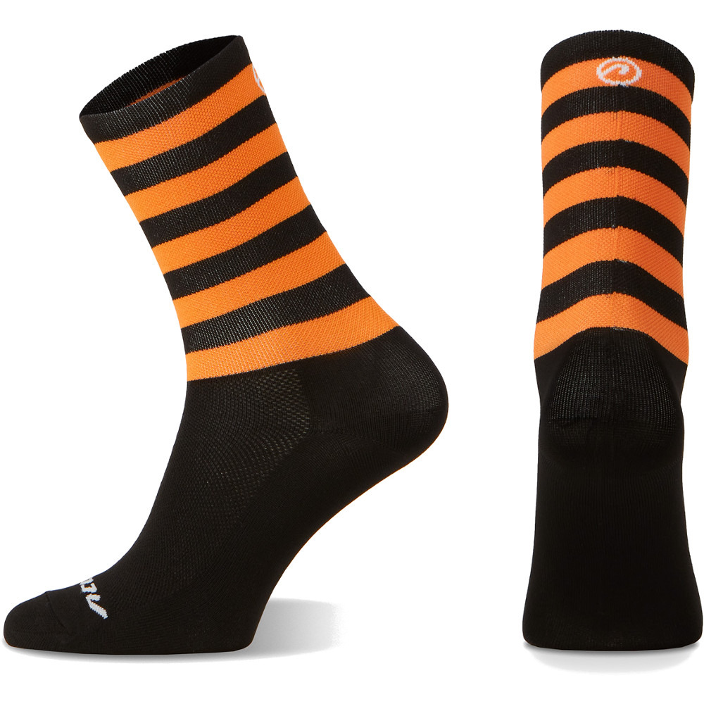Skarpetki Stripe Long kolarskie wykonane z tkaniny Prolen, która bardzo dobrze odprowadza wilgoć i chroni stopy przed nadmierną potliwością oraz bakteriami. Specjalny splot włókien w okolicach grzbietu stopy zapewnia bardzo dobrą wentylację, a jednocześnie delikatnie amortyzuje podeszwę. Idealnie przylegają do stopy nie powodując otarć. Ściągacz pewnie utrzymuje skarpetkę na miejscu. Specjalny splot w okolicy ścięgna Achillesa zapobiega nadmiernemu uciskowi. Skarpetki Stripe Long bardzo szybko schną i nie rozciągają się, zachowując swój fason przez długi czas.