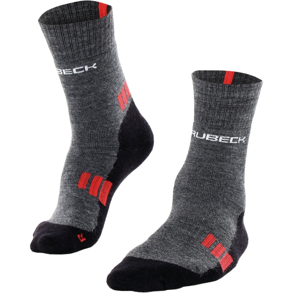 Skarpetki Brubeck Trekking Light staną się niezbędnym elementem podczas wypraw trekkingowych. Wykonane zostały z dwuwarstwowej, elastycznej dzianiny. Odprowadzają wilgoć na powierzchnię produktu, zachowując przy tym suchość skóry. Wełna merino nie przejmuje zapachów, dzięki czemu nie musisz martwić się o nieprzyjemny zapach. Kolejnym atutem produktu jest termoregulacja temperatury stopy. Nie pozwolą na przegrzanie i wychłodzenie. Bezszwowa konstrukcja skarpetki zapewnia ochronę przed otarciami oraz odciskami. Bezuciskowe ściągacze nie pozwalają skarpecie przesuwać się w trakcie aktywności. Dzięki Trekking Light nie musisz się już martwić o nieprzewidziane otarcia czy nieprzyjemny ucisk podczas pieszych wędrówek.