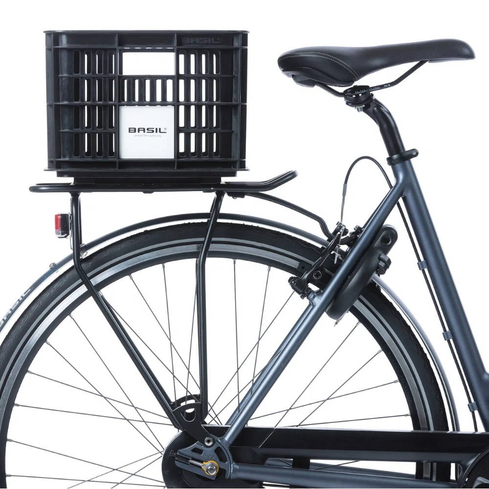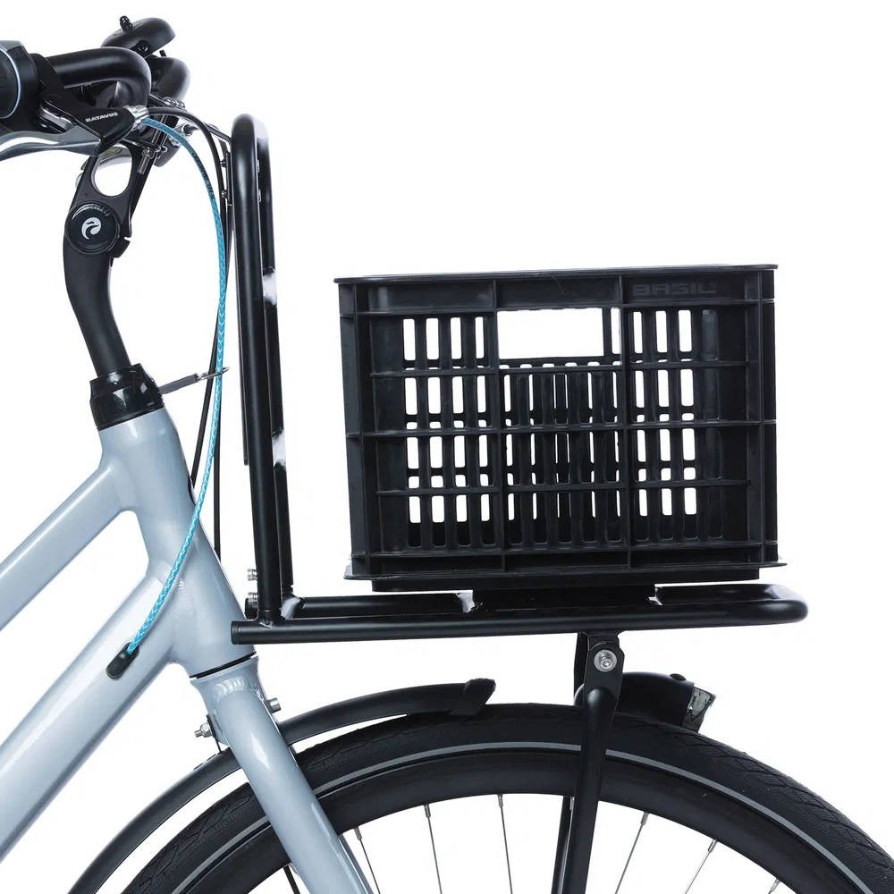 Skrzynkę na rower Basil Crate wykonano w Holandii z trwałego tworzywa sztucznego pochodzącego z recyklingu. Sporą zaletą tego materiału jest odporność na niesprzyjające warunki pogodowe oraz lekkość. Jednakże największym atutem koszyka na rower Basil Crate jest jego uniwersalność. Za sprawą prostej konstrukcji skrzynkę możesz zamontować zarówno z przodu roweru – na kierownicy, jak i z tyłu – na bagażniku. Co więcej, Basil Crate można zainstalować na stałe lub poprzez adapter MIK – wybór zależy od Ciebie, Twoich preferencji i możliwości!