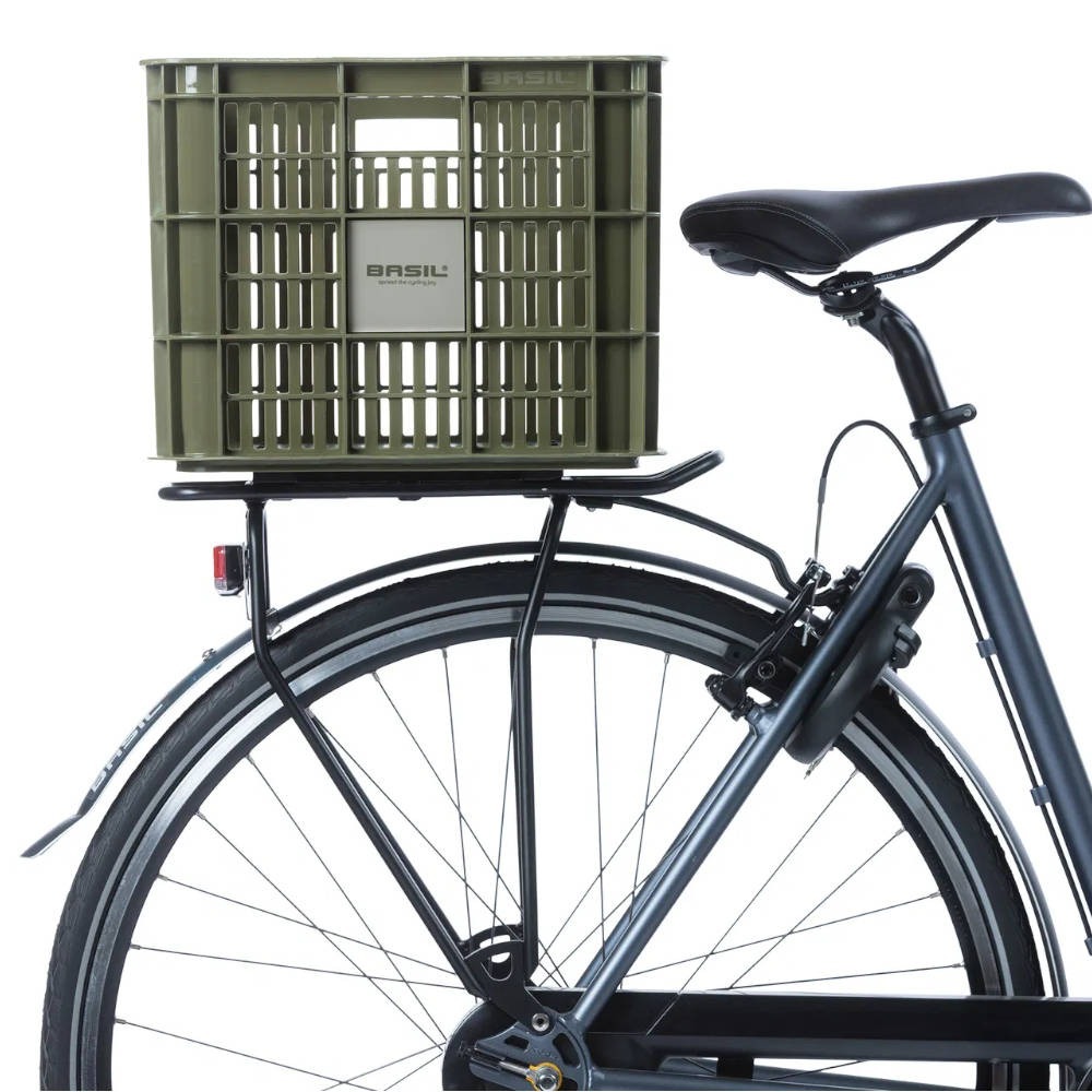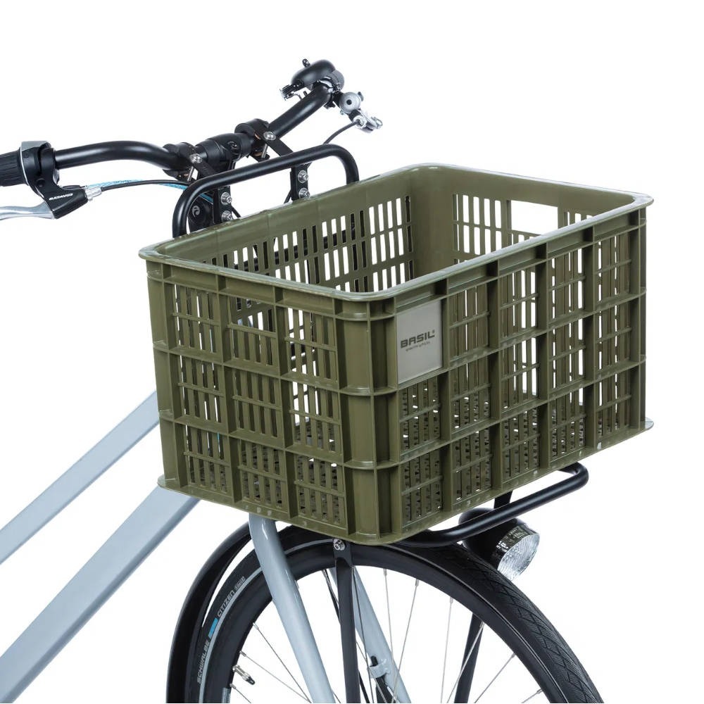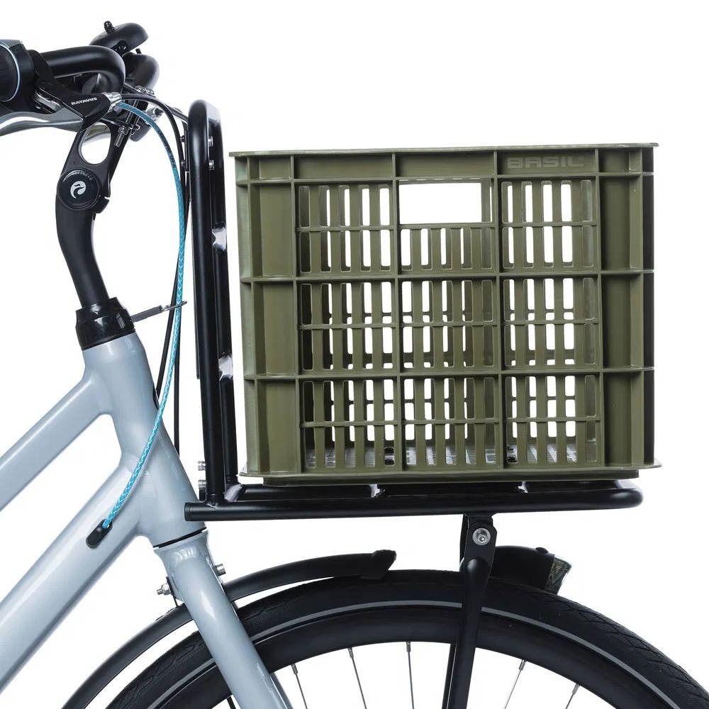 Skrzynkę na rower Basil Crate wykonano w Holandii z trwałego tworzywa sztucznego pochodzącego z recyklingu. Sporą zaletą tego materiału jest odporność na niesprzyjające warunki pogodowe oraz lekkość. Jednakże największym atutem koszyka na rower Basil Crate jest jego uniwersalność. Za sprawą prostej konstrukcji skrzynkę możesz zamontować zarówno z przodu roweru – na kierownicy, jak i z tyłu – na bagażniku. Co więcej, Basil Crate można zainstalować na stałe lub poprzez adapter MIK – wybór zależy od Ciebie, Twoich preferencji i możliwości!
