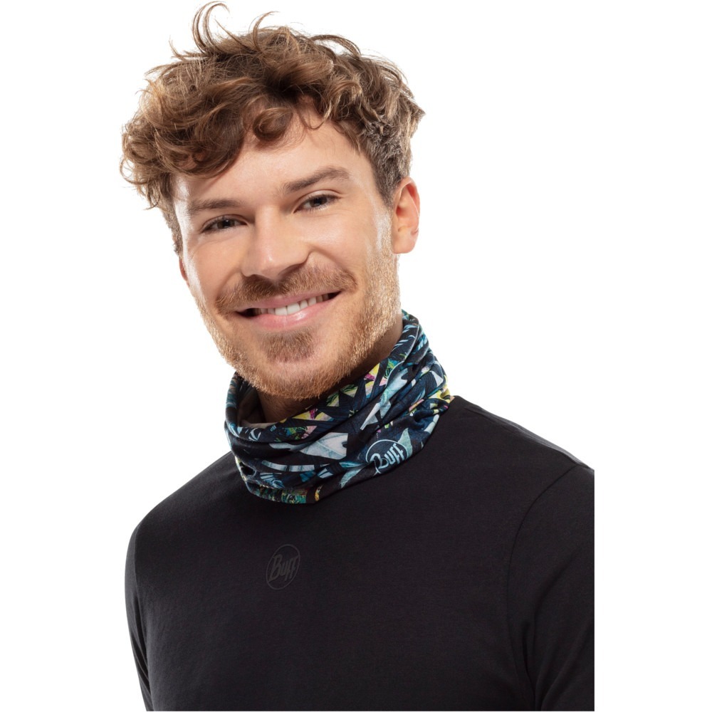 MADE FROM 2 RECYCLED PLASTIC BOTTLES - Butelki z recyklingu są zbierane, myte i siekane w drobne płatki. Następnie topi się je i formuje we paski. Są one topione i zamieniane we włókna, które stają się nowym produktem BUFF®.