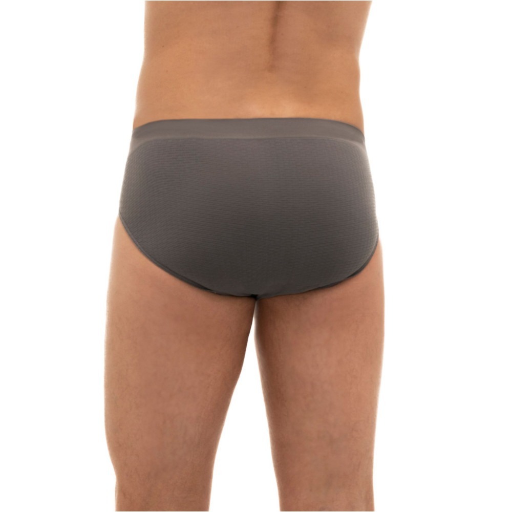 Slipy męskie Base Layer zostały wykonane w technologii bezszwowej z cienkiej, oddychającej dzianiny. Tkanina przylega do ciała, a wraz ze struktura 3D tworzą kanały powietrzne. To pozwoli na wentylację w trakcie lata oraz gromadzenie ciepła w trakcie zimy. Konstrukcja slipów oparta jest na modelu trójwymiarowej siatki, która zwiększa kilkukrotnie powierzchnię odbioru wilgoci. Produkt jest niezwykle komfortowy, nie obciera w trakcie noszenia a także nie krępuje ruchów. Dzianina ma właściwości antybakteryjne oraz antyalergiczne.