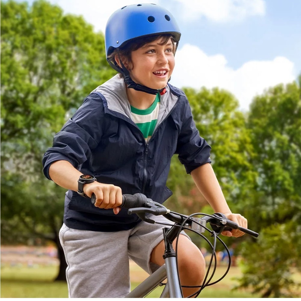 Wbudowane aplikacje sportowe z GPS pozwalają dziecku śledzić aktywność podczas biegania, spacerów czy jazdy na rowerze, a także rejestrować długości basenu podczas pływania. Smartwatch zapisuje dane z różnych ćwiczeń, zlicza codzienne kroki i monitoruje sen, pomagając dbać o równowagę między ruchem a odpoczynkiem.