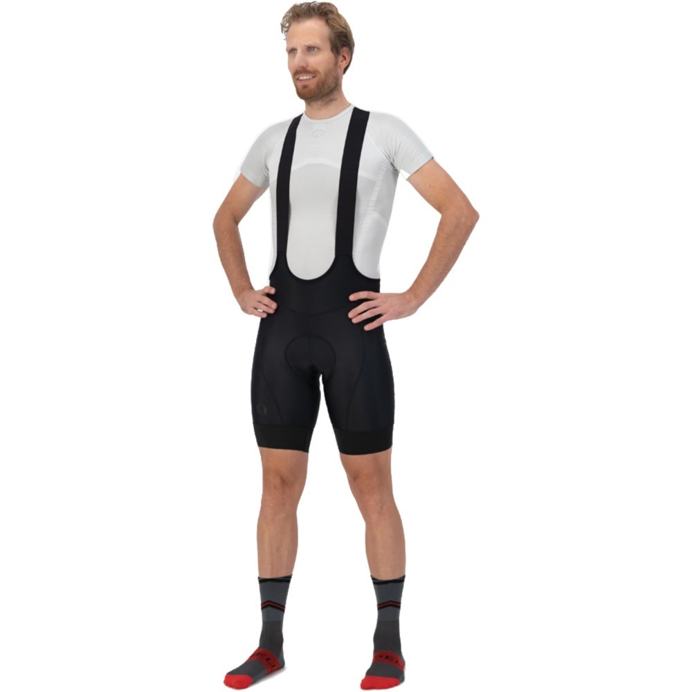 Krótkie spodenki rowerowe Rogelli Essential zostały wykonane z elastycznej tkaniny Dynaflex, która pozostawia ci pełną swobodę ruchów. Wysoki komfort podczas jazdy zapewnia dopasowany krój typu Race oraz żelowa wkładka Comfort Gel, która bardzo dobrze sprawdza się podczas pokonywania średnich i długich dystansów. Spodenki posiadają elastyczny pas, który odpowiednio dopasowuje się do ciała oraz nie podwija. Szerokie boczne panele zostały wykonane z oddychającego materiału zapewniającego skuteczną cyrkulację powietrza. Bezszwowe szelki dołączone do spodenek na plecach są wykończone przewiewną siateczkąpozwalającą skórze oddychać. Nogawki spodenek Rogelli Essential wykończone szerokim ściągaczem z silikonowumi wstawkami sprawiają, że ubranie nie przesuwa się nawet przy intensywnych treningach.