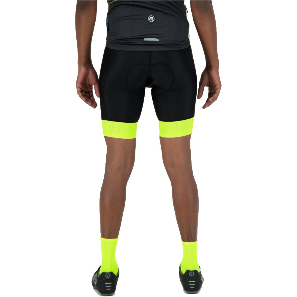 Rogelli Flex to krótkie spodenki rowerowe zawierające bezszwowe szelki z komfortową siateczką na plecach, która zapewnia bardzo dobrą oddychalność. Spodenki zostały wykonane z elastycznego materiału Dynaflex i zapewniają pełną swobodę ruchów dzięki zastosowaniu dopasowanego kroju typu Race. Spodenki zostały zakończone 5-centymetrowymi ściągaczami, które na dodatek posiadają silikonowe wstawki po wewnętrznej stronie. Nie tylko umożliwiają one jeszcze lepsze dopasowanie ubrania do ciała, ale także sprawiają, że spodenki pozostają cały czas na swoim miejscu i nie przesuwają się w trakcie jazdy. Dla zapewnienia jeszcze lepszego komfortu podczas jazdy na średnich i długich dystansach spodenki wzbogacono o wygodną wkładkę Comfort Gel.