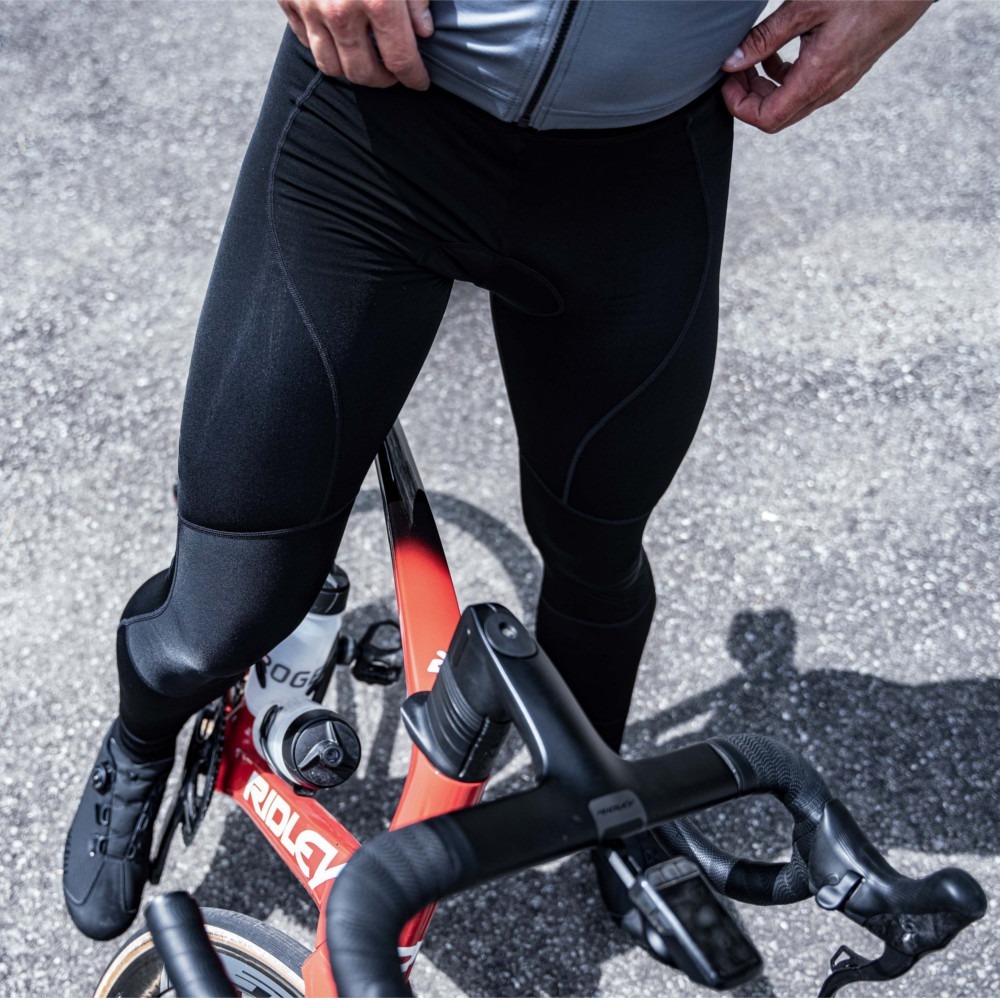 Spodnie rowerowe Rogelli Essential wykonano przy wykorzystaniu bardzo elastycznego, rozciągliwego w czterech kierunkach materiału Dynatherm Flex 240. Charakteryzuje się on także bardzo dobrą oddychalnością, która wspomaga cyrkulację powietrza. Aby kolarzowi było ciepło, projektanci spodni zadbali o staranne wyściełanie, a na kolanach umieścili podwójną warstwę materiału – skutecznie chroni ona przed zimnym wiatrem.