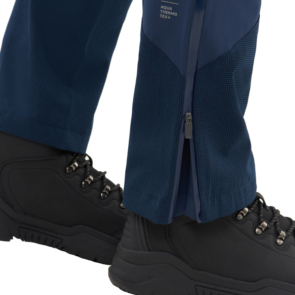 Zastosowana w spodniach membrana Aqua Thermo TEX+ jest wysoce wodoodporna i wiatroszczelna. Cechą charakterystyczną dla tej membrany jest połączenie niskiej wagi, co wpłynie na komfort użytkowania oraz wysokich parametrów paro przepuszczalności. Odporność na deszcz wynosi aż 15 000 mm, więc spodnie będą stanowiły doskonałą barierę przed największymi opadami, zachowując przy tym wysoki poziom oddychalności. Dodatkowo wszystkie szwy zostały podklejone, a zamki są wodoodporne.