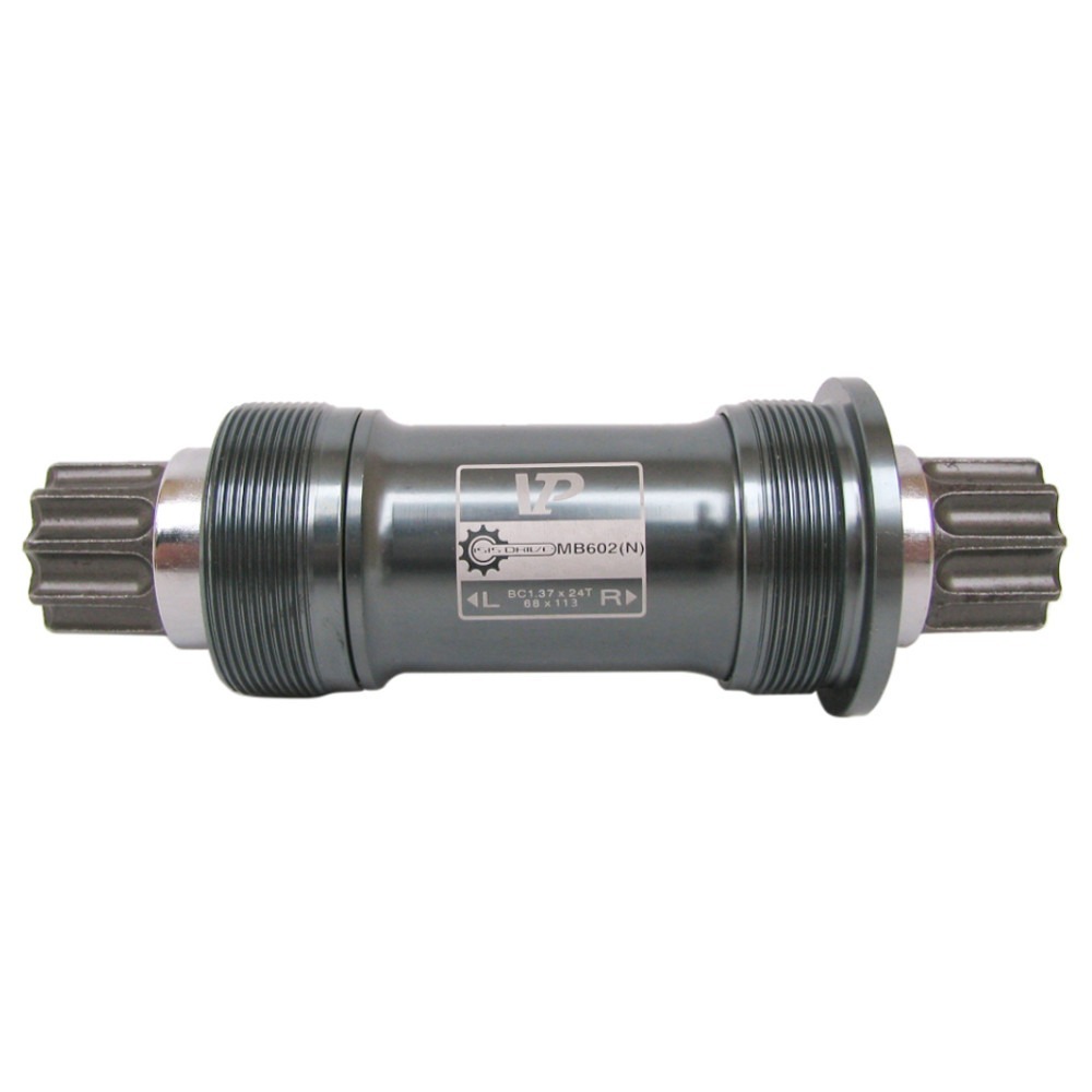 Wkład mechanizmu korbowego VP MB602 z drążoną osią ze stali CrMo i miskami BSA z aluminium, przeznaczony do wszystkich typów rowerów. System mocowania korby wielowpustem systemu ISIS.