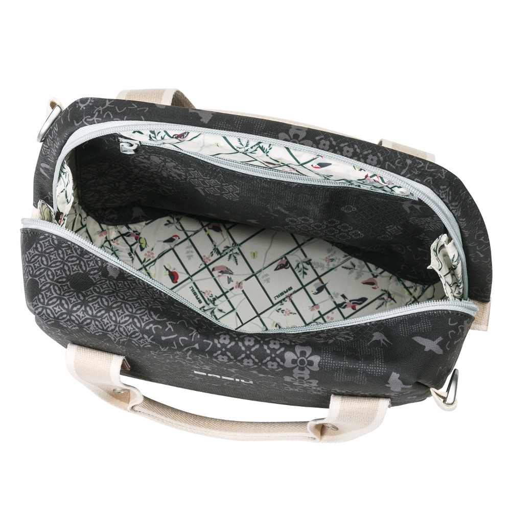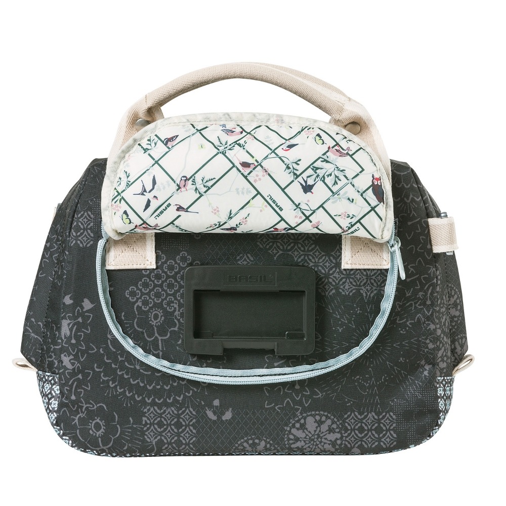 Torba Basil Boheme City Bag wyposażona została w pasek na ramię umożliwiający swobodne przenoszenie po zdemontowaniu z kierownicy.