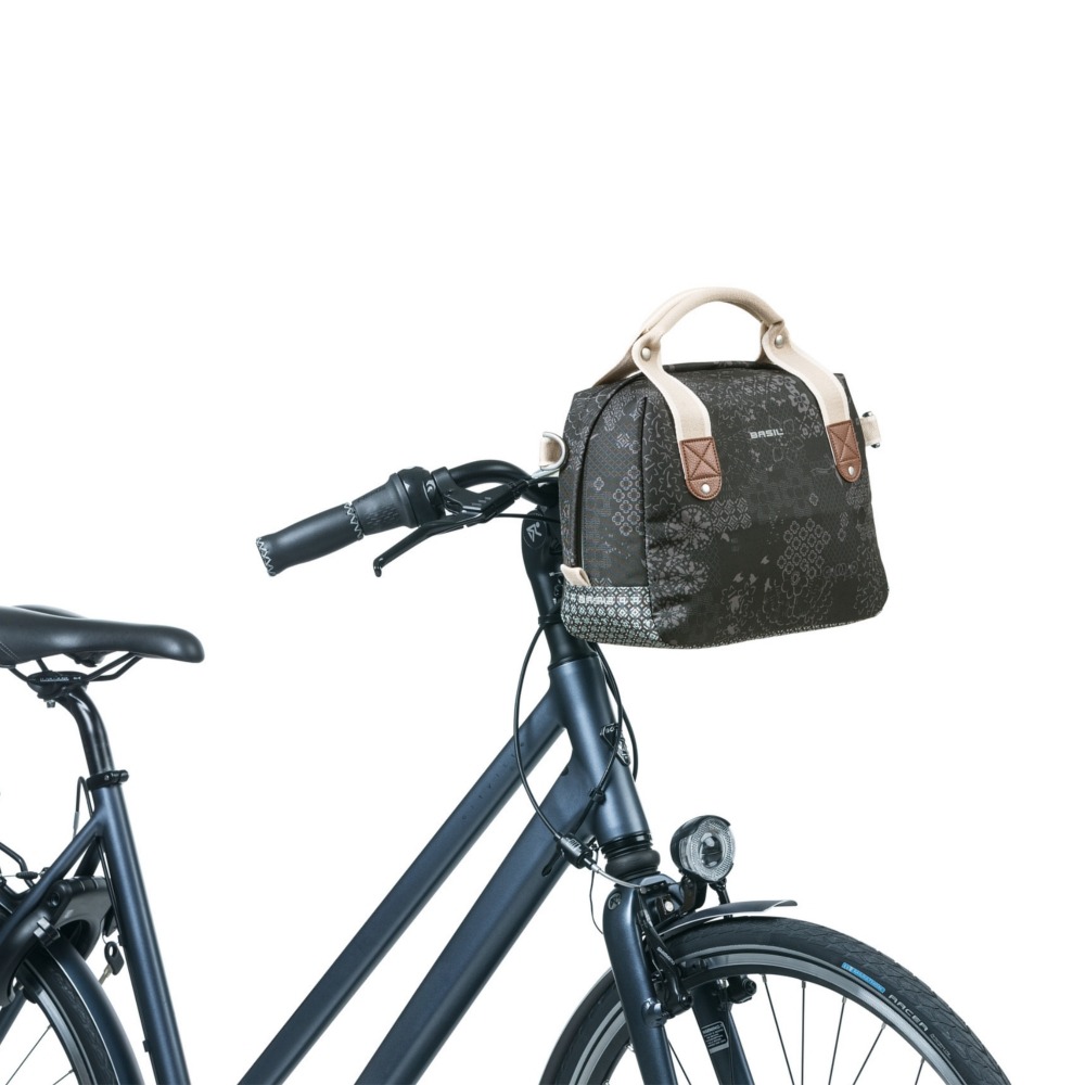 Basil Boheme City Bag to torba rowerowa na kierownicę wykonana z poliestru o ciekawym, nowoczesnym wzorze. Ma pojemną kieszeń zapinaną na suwak, która świetnie się sprawdzi niezależnie czy jedziesz do pracy czy na zakupy. Mniejsze wewnętrzna kieszonka doskonała jest do schowania np. dokumentów czy portfela. Tkanina ma właściwości wodoodporne, więc nie podda się łatwo nawet przy mokrej, deszczowej pogodzie. Elementy odblaskowe skutecznie poprawiają twoją widoczność i bezpieczeństwo po zmroku.
