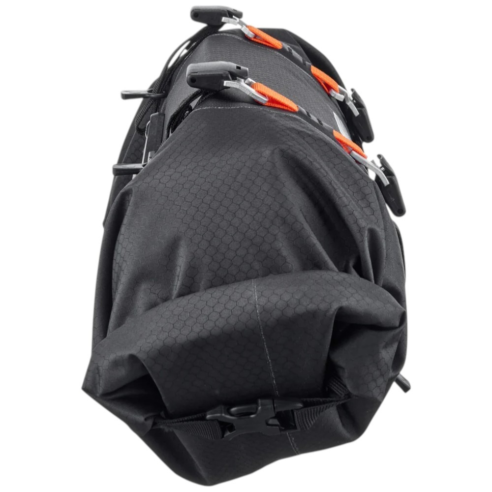 Wodoodporna konstrukcja i odpowiednia pojemność sprawiają, że torba bez problemu pomieści kompaktowy śpiwór oraz matę, zapewniając optymalne rozłożenie ciężaru na rowerze.