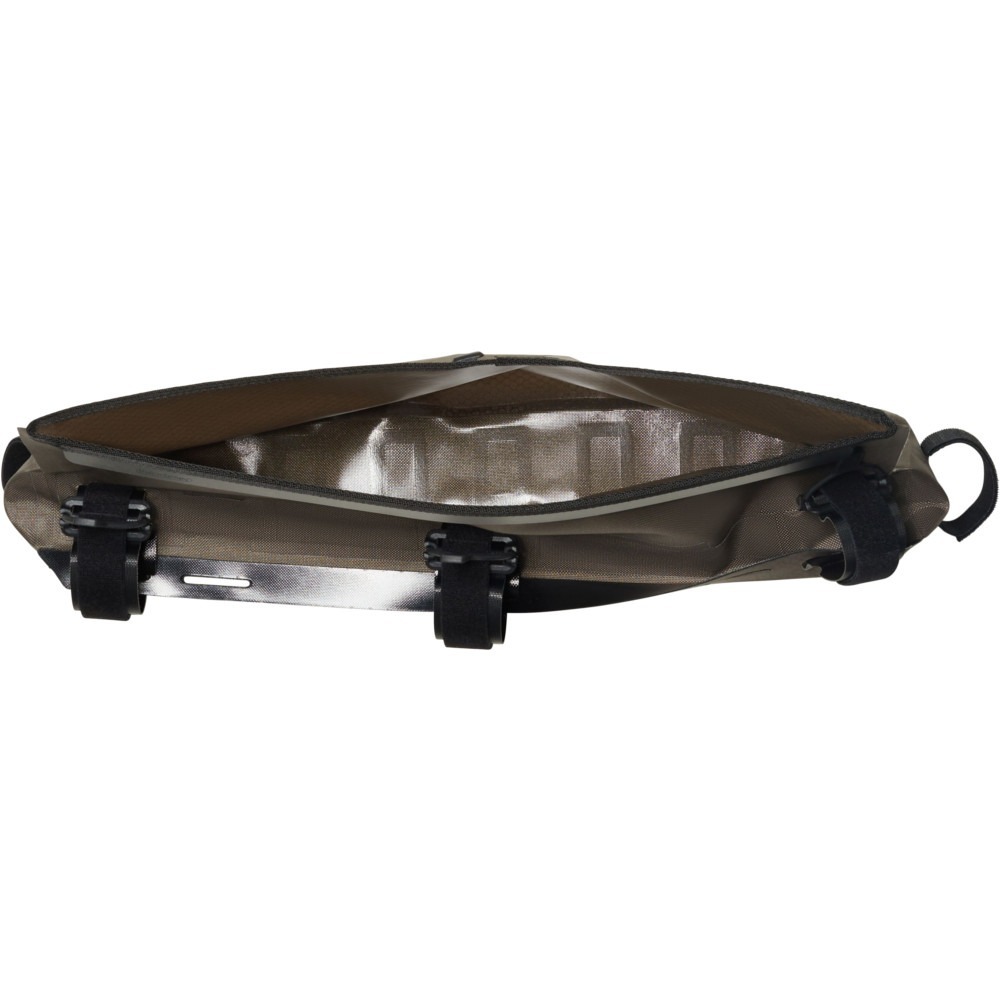 Torba pod ramę Ortlieb Frame Pack Toptube RC mocowana jest przy pomocy specjalnie wzmocnionych taśm na rzepy do rur: górnej i podsiodłowej, zapewniając maksymalną stabilność. Co więcej, spokojnie można umieścić ją na ramie z włókna węglowego.